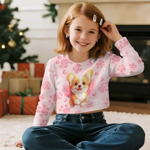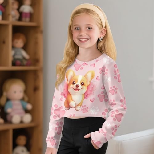 Sweatshirts for Girls Cropped Pullover Top Long Sleeve Crewneck Sweatshirt Tee Shirts Kids Teens Fall Clothes 6