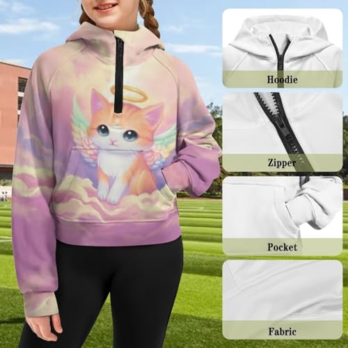More information about Sweatshirt for Girls Cropped Hoodies Half Zipper Pullover Cute Clothes for Kids Fall Jackets with Pockets 5-14