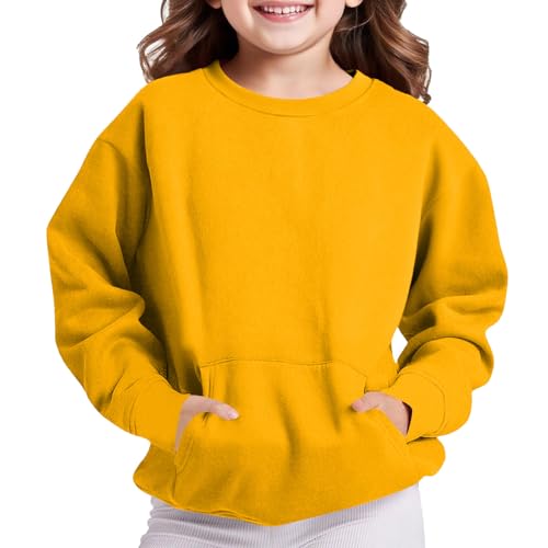 HOT ! DDAPJ pyju Girls Long Sleeve Sweatshirts with Pocket Kids Casual Crewneck Pullover Loose Fit Workout Basic Tops 2-12 Years