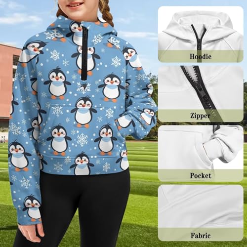 WELLFLYHOM Girls Cropped Sweatshirt 5-14T 1/2 Zip Up Collar Hoodies Graphic Long Sleeve Sweater Top with Pocket 4