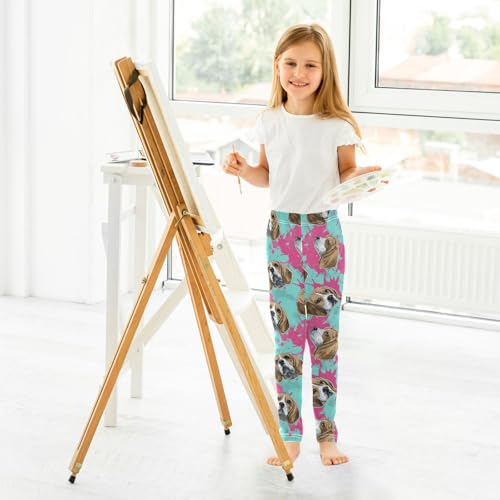 Cartoon Dog Splash Ink Girls Leggings Ultra Soft Compression Yoga Gym Pants for Kids 4-10T 4