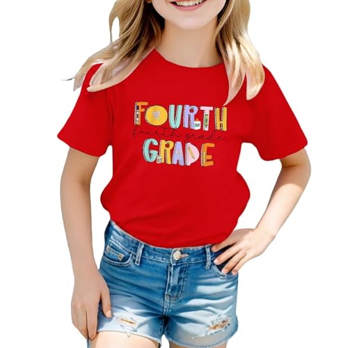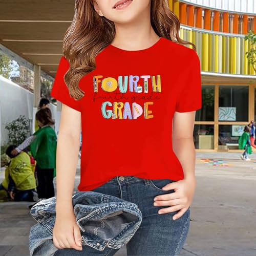 Kids Girls Back to School Tees Boys Short Sleeve Crewneck Tops Boys Graphic T-Shirts Tween First Day of School Trendy Tees 4