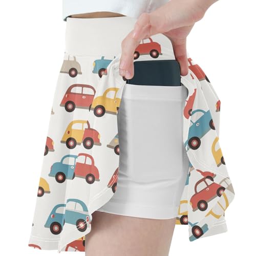 visesunny Girls Flowy Pleated Skirt Cartoon Car Taxi Pattern Tennis Golf Fashion Short Skorts for Casual Dance Outfit 7