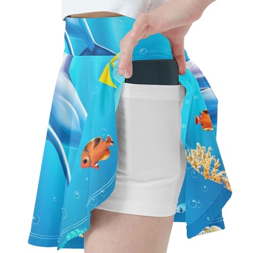 Underwater Scene Dolphins Fish Athletic Shorts for Girls Skorts Tennis Skirts Toddler Gymnastics Little Girl 3t 5