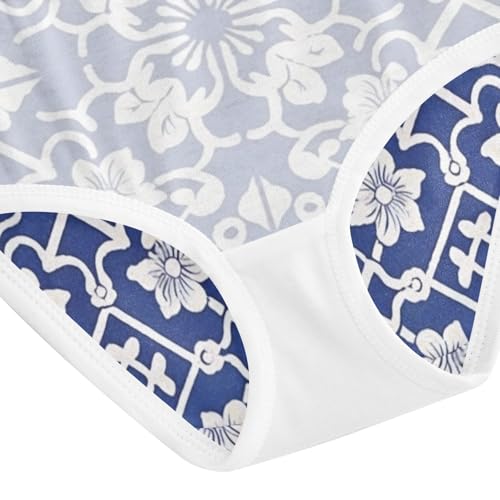Blue and White Delicate Tile Girls' Breathable Triangle Panties Organic Underwear for Kid in Sizes 2T,3T, 4T, 5T, 6Y and 8Y 5