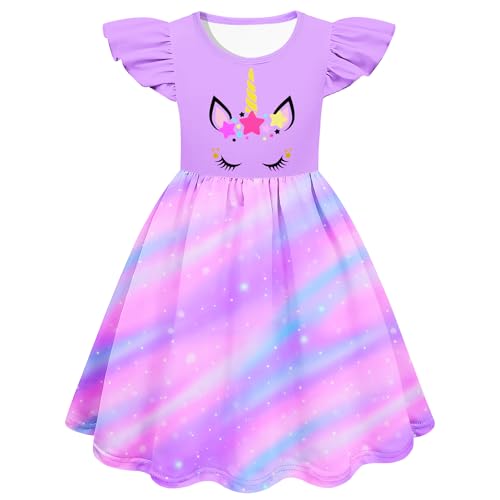 2PCS Flutter Sleeve Summer Dress Cute Toddler Dresses Party Birthday Sundress for Girls 4-8 Years 5