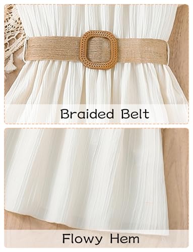 Happy Cherry Girls Ruffle Trim Off Shoulder Dress with Belt Spaghetti Strap Sundress Summer Sleeveless Midi Dresses 8-12 6