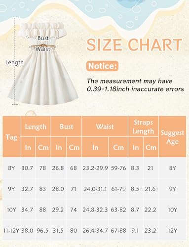 More information about Happy Cherry Girls Ruffle Trim Off Shoulder Dress with Belt Spaghetti Strap Sundress Summer Sleeveless Midi Dresses 8-12