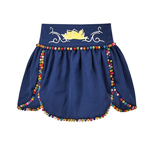 • Chinese style girls Hanfu dress in light green gradient color, trumpet long sleeves, white floral printing bodice with traditional big V neck. 2PC Set with rainbow color pom poms trim blue girdle, lotus embroidery and bow tie back. Suitable for ancient China theme party, Halloween party, Trick or Treat, Chinese New Year party and Hua Mulan photo taking.