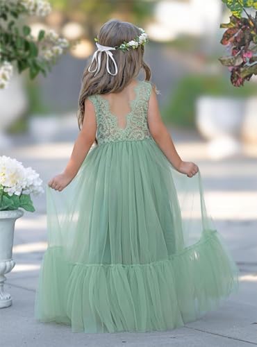 Flower Girl Dress Lace Tulle Boho Communion Beach Toddler Dresses Ruffle Girl Dress for Wedding Garden Party Gown 6