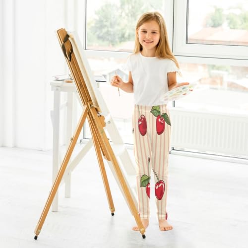 Bolaz Toddler Girls Leggings Printed Yoga Pants Leggings Striped Cherries for Kids 4