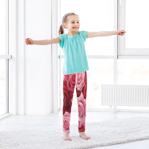 Bolaz Toddler Girls Leggings Printed Yoga Pants Leggings Red and Pink Roses for Kids 7