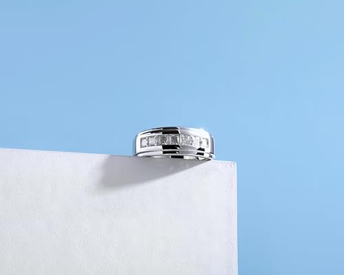 2.1 Carats 7 Stone Princess Cut Moissanite Rings for Men Women Moissanite Eternity Wedding Band Ring D Color VVS1 Moissanite Channel Set, Sterling Silver with 18K White Gold Plated Men Moissanite Ring 5