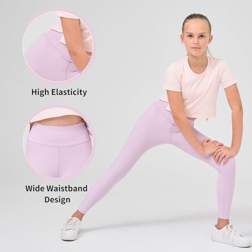 • Stretchy and Secure Fit Designed with an elastic and supportive high-waisted band, these girls’ leggings stay securely in place, no matter how active your child is. Perfect for energetic activities like dance and yoga, the pants provide a snug fit without being restrictive.