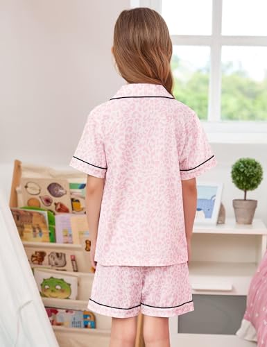SWOMOG Girls Pajamas Set Kids Button-Down PJs 2 Pcs Soft Lounge Sets Summer Short Sleeve Sleepwear 5