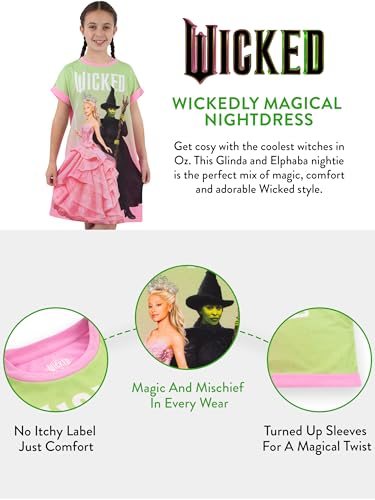 • Fun Glinda And Elphaba Design: Featuring Glinda in her classic Glinda dress and Elphaba in her iconic hat, with the contrasting ‘Wicked’ wording in white above. This girls' nightgown brings the magic of Wicked to bedtime and lets your little one show off her love for the Wicked movie and the musical