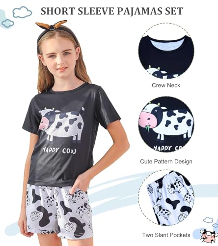 uideazone Girls Pajamas 3 Pieces Set Shirts&Tank Shorts Pjs Sets Cute Sleepwear Size 5-14 1