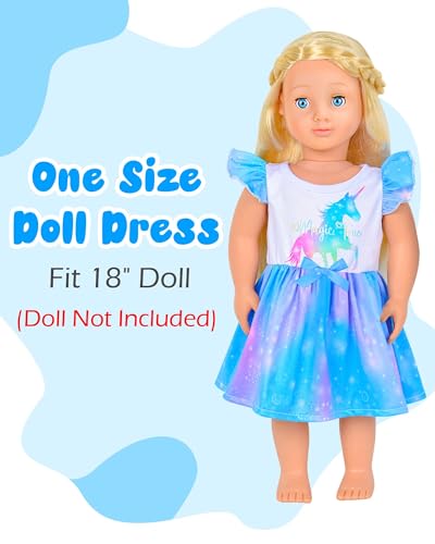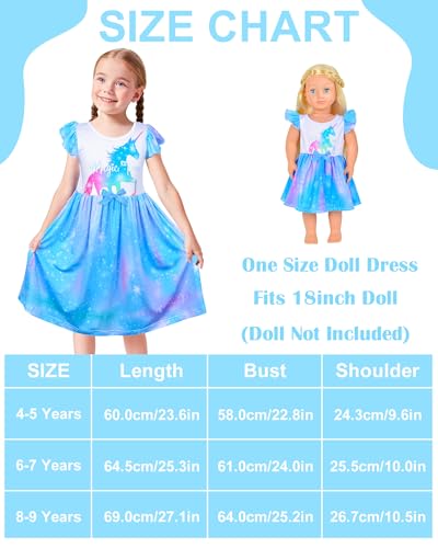 PASHOP Doll and Girl Matching Nightgown Flutter Sleeve Unicorn Princess Pajamas Night Dress for Girls and 18" Doll Clothes 4