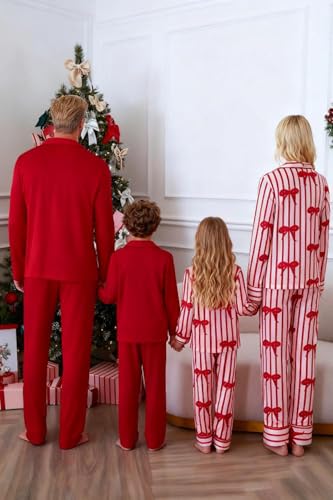 • Festive Design: Matching pajamas for family couples featuring red pajamas set for men boys; striped bow print pajamas set for women girls, these christmas jammies family capture the essence of the holiday season