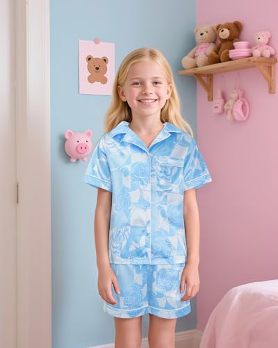 LQSZ Girls Pajamas Set Satin 2PCS Sleepwear 3-10 Years Kids Silky Button-Down Shorts Set 7