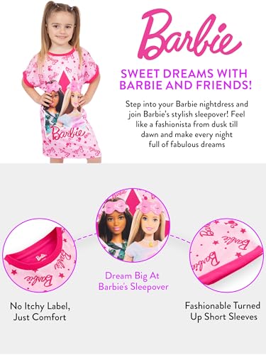 Barbie Nightgown For Girls | Short Sleeve Pajama Gown | Fashionista Girls Sleep Shirt | Ages 4 To 10 1