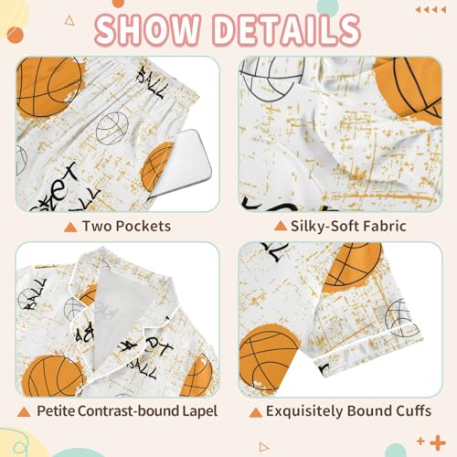 More information about Satin Pajama Sets Short Sleeve Basketball Print for Textiles Button Down Silky Nightwear 2 Piece PJS 5-14Y