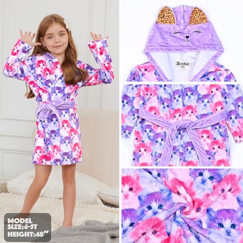 Jxstar Girls Bathrobes Kids Hooded Robes Pajamas Plush Soft Coral Fleece Sleepwear 4