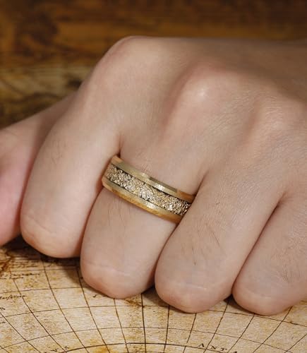 4mm 6mm 8mm Tungsten Wedding Bands for Men Women Yellow Gold Plated/Gold Foil/Meteorite Engagement Promise Rings for Couple Him Her Matte Brushed Domed/Beveled Edges Comfort Fit Size 5-14 3