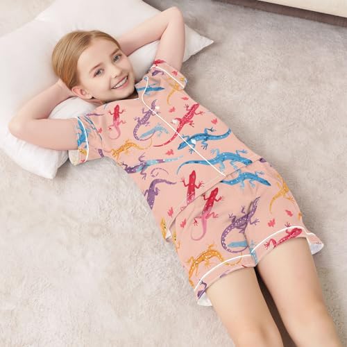 Colorful Lizards Pajamas Set Summer Button Down Sleepwear Pjs Sets Comfy Loungewear 1