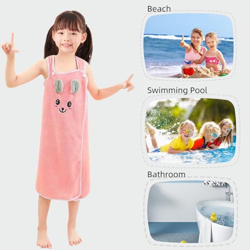 More information about Kids Toddlers Bath Towel Wrap, Cartoon Rabbit Cute Girls Soft Beach Robe Bathing Shower Cover Up Bathrobe Sleepwear