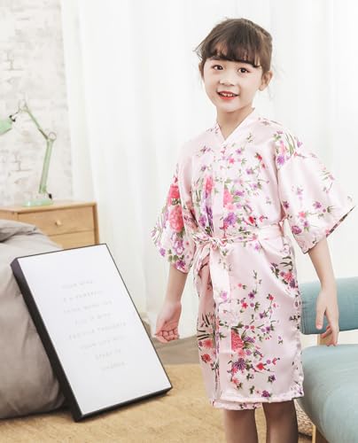 Cherry Blossoms Floral Kimono Robe Silk Bridal Party Robes Nightgown for Girls Housecoat 4