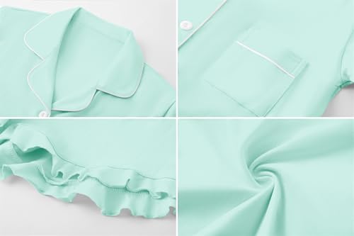 QZH.DUAO Pajama Sets,100% Cotton Button up Soft Sleepwear with Ruffle 2PCS PJ Set Nightwear, Mint Green, 5-6 Years = Tag 130 4