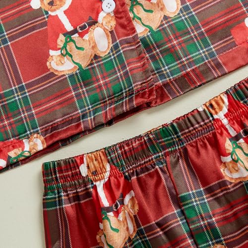 Kids Toddler Girl Christmas Satin Pajamas 2 Pcs Holiday Pajama Set Candy Cane Print Shirts + Pants Sleepwear Outfit 7
