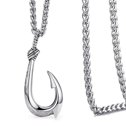 MOO&LEE Fish Hook Necklace for Men Hawaiian Makau Necklace Maui Fish Hook Pendant with 24 Inch Stainless Steel Chain 5