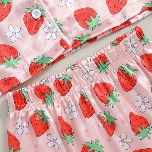 HOT ! Kids Girls Pajamas Baby Short/Long Sleeve Lapel Button Down Tops Pants Satin Sleepwear Silk Fall Spring Loungewear (Y Strawberry Pink, 2-3 Years)