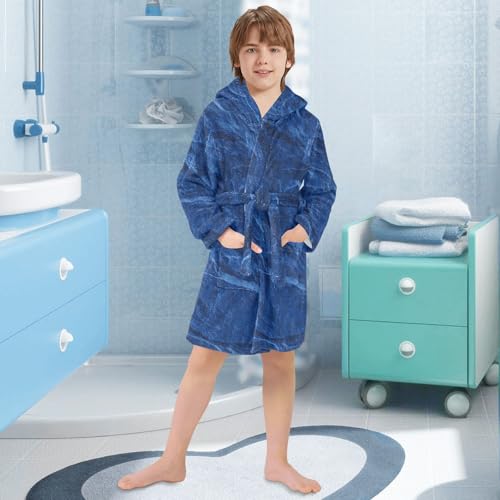 GuoChe Bathrobe For Kids Girls Dark Royal Blue Slate Slab Hooded Pajama 5