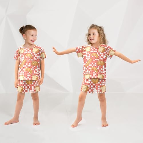 Pajama Short Sets Bread Pattern on Checkered Soft Cotton Summer Sleepwear 2 Piece PJS Size 5-14T 6