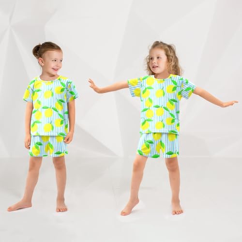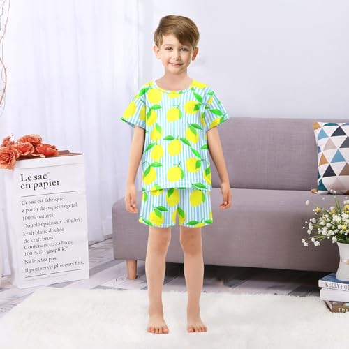 Lemon Leaves Stripe Pajama Set Short Sleeve Sleepwear Soft Pajamas Shorts Sets Cotton PJS 5Y 4