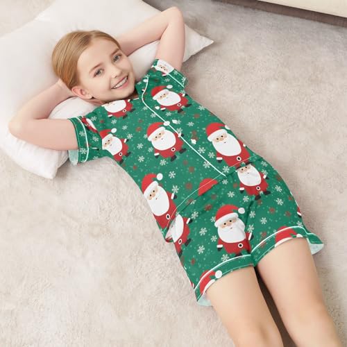 Satin Pajama Sets Short Sleeve Santa Claus on Green Background Button Down Silky Nightwear 2 Piece PJS 5-14Y 5