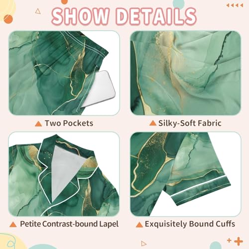 HOT ! senya Pajama Sets Silky Button Down Nightwear Sleepwear Size 5-14 Years Green Marble