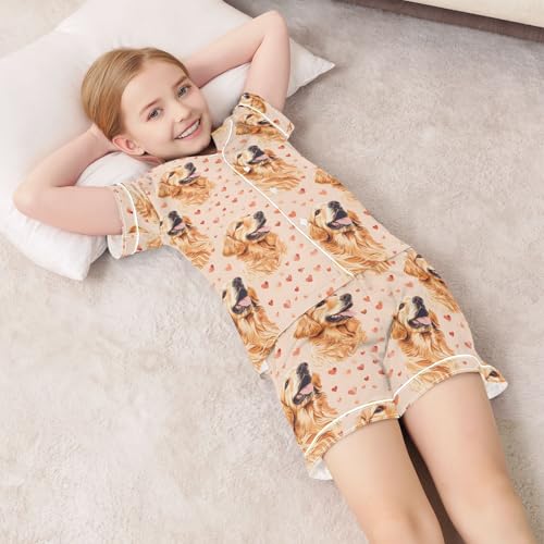 Golden Retriever Love Heart Pajamas Set Summer Button Down Sleepwear Pjs Sets Comfy Loungewear 7