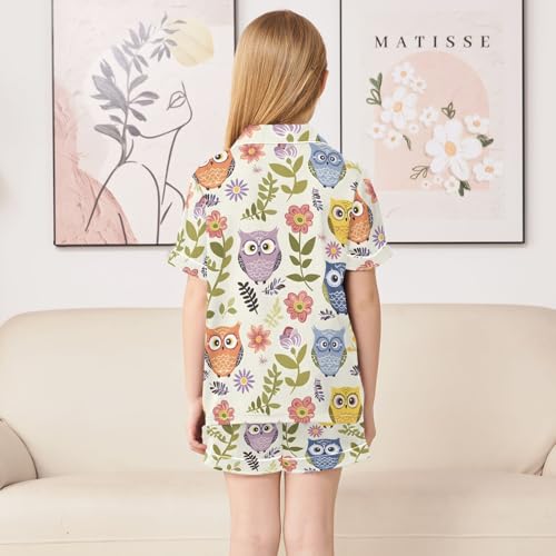 Colorful Owl Flower Pajamas Set Summer Button Down Sleepwear Pjs Sets Comfy Loungewear 6