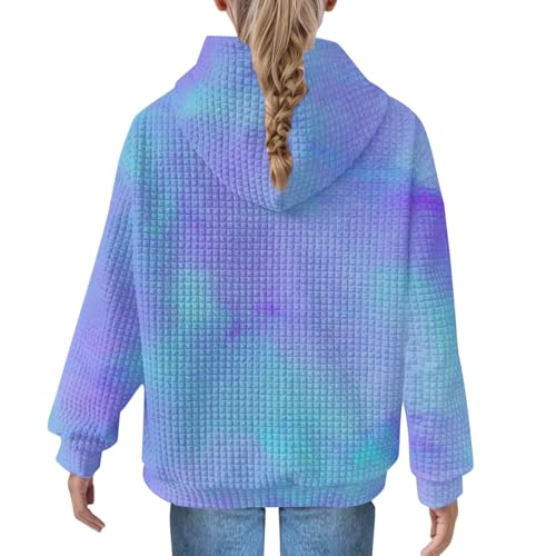 HOT ! Waffle Hoodies for Teen Girls Y2K Long Sleeve Oversized Pocket Gradient Pullover Tops Tie Dye Preppy Clothes for Teen