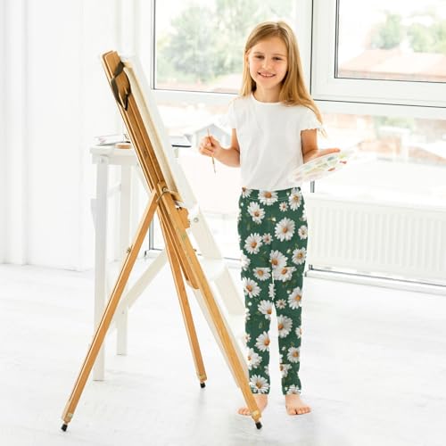 Summer Cute White Daisy Flowers Girls Leggings Kids Yoga Pants Dance Active Tights 4T 3