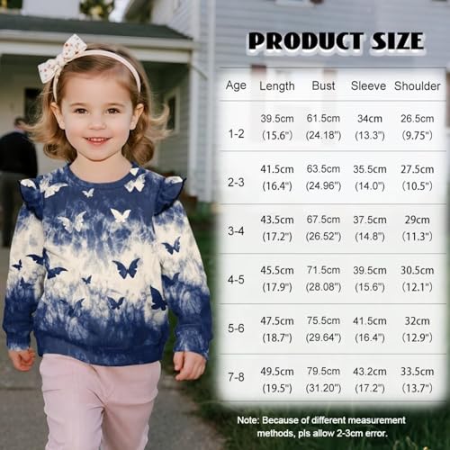 Xhuibop Toddler Clothes for Girls Crewneck Sweatshirt Ruffle Sleeve Design Casual Shirts for Age 1-8 Years 2