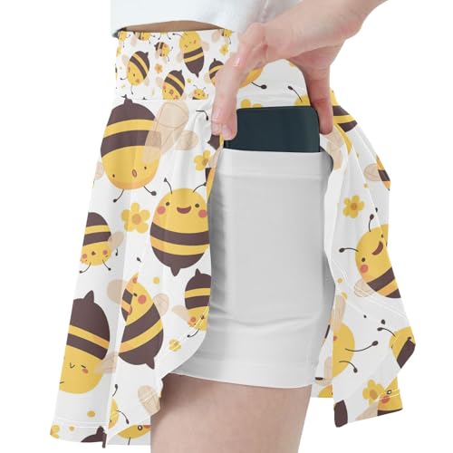 visesunny Girls Flowy Pleated Skirt Cute Cartoon Bumblebee Flower Tennis Golf Fashion Short Skorts for Casual Dance Outfit 1