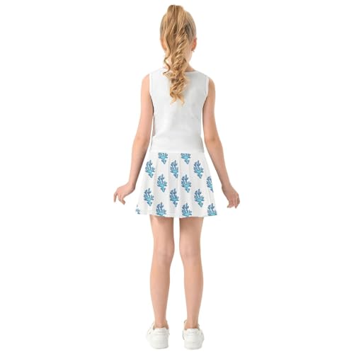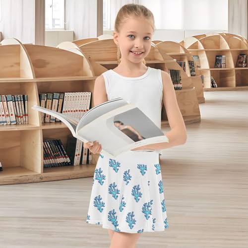 Girls Skorts High Waist Athletic Skirts with Shorts Blue Coral Stretchy Teens Performance Tennis 6
