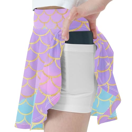 Colored Athletic Shorts for Girls Skorts Kids Tennis Skirts Butterfly Skirt Pastel Purple Mermaid Scale Pink 4t 6