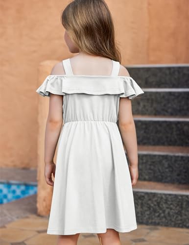 Arshiner Girls Dresses Summer Spaghetti Strap Cold Shoulder Ruffle Button Down A Line Dresses 4