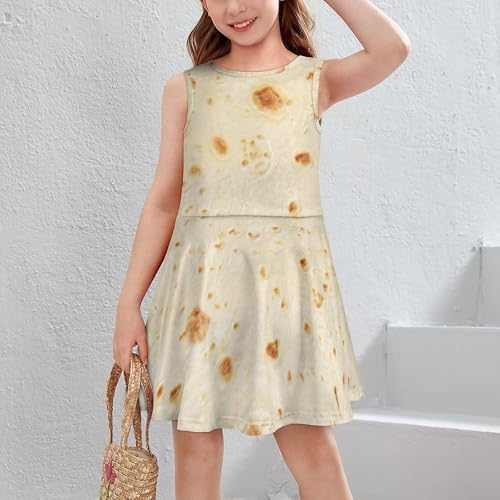 Burrito Tortilla PatternGirls Summer Casual Sleeveless Dress130CM 6